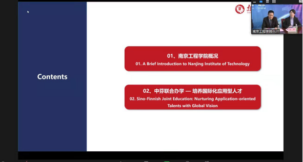 On the afternoon of December 10, the 3rd Presidents Seminar of the Sino-Finnish Universities of Applied Sciences was held at NJIT. The seminar was jointly hosted by the China Education Association for International Exchange (CEAIE) and the Rectors’ Conference of Finnish Universities of Applied Sciences (ARENE) and co-organized by the China Center for International Educational Exchange (CCIEE) and NJIT. This online meeting (by conference call) included An Yan (Deputy Secretary-general of CEAIE), Mervi Vidgrén (President of ARENE), Zhao Lei (Chief of the European Division of the Department of International Cooperation and Exchanges, Ministry of Education) and Jing Meiying (Deputy Director of the International Cooperation and Training Department of the National Academy of Education Administration) together with fellow representatives from CEAIE, CCIEE, ARENE, 12 Chinese partner institutes and six Finnish partner institutes.