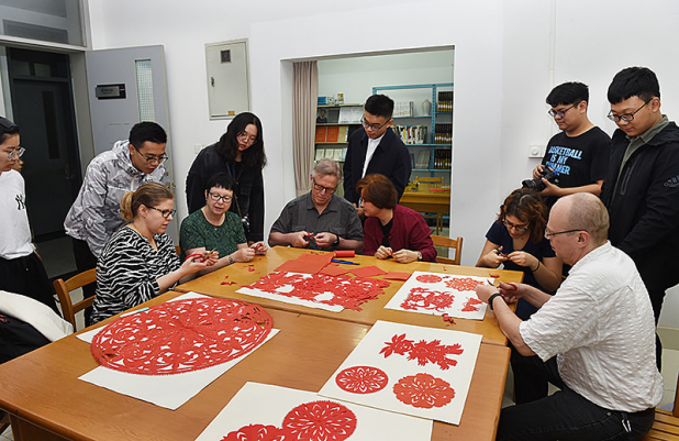 “The flower pattern diverges from the center to the outside. In the composition, we should pay attention to the density of the lines. When cutting the wavy lines, we should coordinate our hands. Yes, that’s it. Cut while rotating the paper.” Under the careful guidance of teachers from the School of Art and Design, Finnish teachers from the University of Oulu and students from Sino-Finnish program studied the art of Chinese paper-cutting. During this experience, the Finnish teacher said, “We are very interested in traditional Chinese culture. I finally experienced the art of Chinese paper-cutting, which I had only read about. This is the first paper-cut artwork in my life!” The teacher from the School of Art and Design also presented her newly created works of art to the Finnish teachers as gifts, with the intention that more Finnish teachers and students could appreciate the charm of traditional Chinese culture and art and enhance the bond between teachers and students.