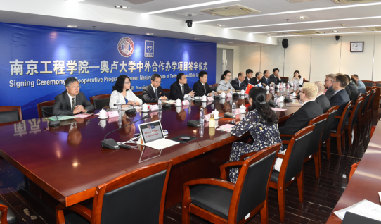 Witnessed by the participants, President Sun Yukun and Prof. Jouko Niinimäki signed the agreement on Software Engineering Undergraduate Education Program between Nanjing Institute of Technology and University of Oulu.