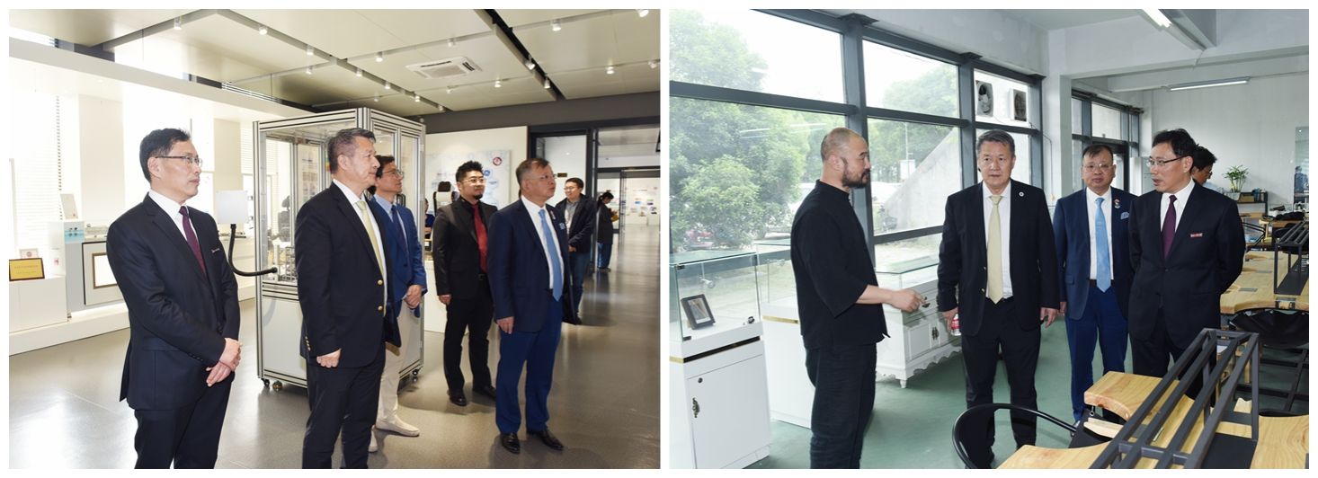 Accompanied by Mr. Zhang Yangfei, member of the Standing Committee of University Council and Vice President of NJIT, the delegation visited the School of Innovation and Entrepreneurship, the campus-based Tianyin Dreamworks Incubation Studio and the School of Art and Design.