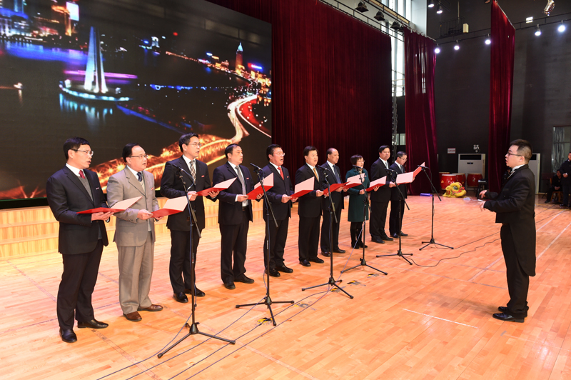 1月17日下午,太阳集团天健苑·体育中心布置一新,大红底色LED电子屏上的 “2018年迎新春团拜会”几个大字熠熠生辉,全场洋溢着欢乐祥和的节日氛围。全体校领导与教职员工代表欢聚一堂,喜迎新春,并向全校师生员工表达新年的问候和美好的祝福。 团拜会开始前,经单位推荐、征求意见、公开投票的学校2017年度“十件大事”评选结果正式揭晓。学习宣传贯彻党的十九大精神、接受教育部本科教学工作审核评估、深入推进“三进三知”专题实...