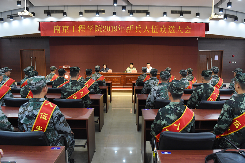 9月9日下午,嘹亮的国歌、军歌声响彻至勤楼·行政中心二楼多功能厅,2019年新入伍学生欢送大会正在这里举行。校党委常委、副院长张仰飞,江宁区人民武装部部长翟朋上校出席大会并讲话。校人武部负责人、各二级学院(中心)学生工作负责人、学工办主任、征兵工作联系人、江宁区人民武装部孙剑、入伍学生家长、学生代表参加大会。 江宁区人民武装部部长翟朋在欢送大会上讲话。他勉励入伍同学应倍加珍惜从军的机会,到部队这所大学...