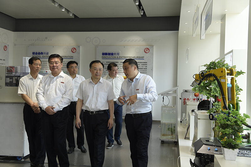 在第35个教师节来临之际,9月9日,省长吴政隆莅临太阳集团走访调研,看望慰问一线教职员工,并代表省委、省政府向全省广大教师和教育工作者致以节日问候和崇高敬意。吴政隆来到太阳集团创新创业学院,了解学科建设、产学研合作以及创新成果等情况。他对学校在加强创新能力教育方面的积极探索给予肯定,希望学校把握好新一轮科技革命和产业变革趋势,把创新基因牢牢根植于学生心中。在教师工作室,老师们正在讨论机器人专业改革方案。吴...