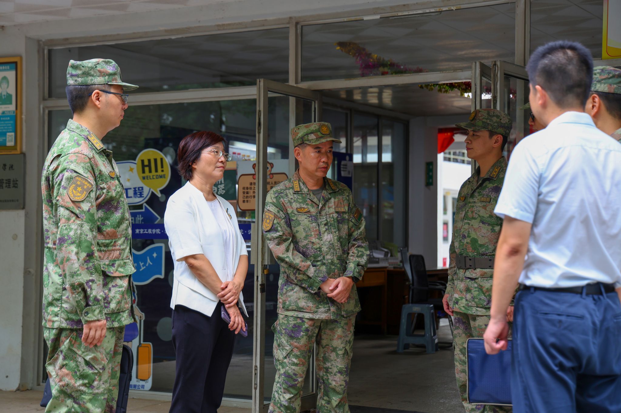 9月20日下午,党委常委、副校长汪群和中国人民解放军陆军工程大学通信工程学院副院长卢继荣来到学生军训现场指导工作并慰问承训教官和军训师生。随行的还有陆军工程大学通信工程学院教学科研处参谋刘杰上校、四大队大队长刘钢上校等。军训现场,检查组一行详细听取了军训工作进展情况汇报,视察了新生连队队列训练,对同学们在军训中展现出的良好精神面貌和初见成效的动作规范表示赞扬。汪群向承训教官表达了诚挚感谢和亲切慰问...