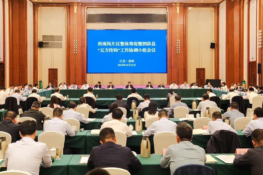 10月15日至16日,西南岗片区整体帮促暨泗洪县“五方挂钩”工作协调小组会议在泗洪县召开,省人大常委会副主任、党组副书记张爱军出席会议并讲话。西南岗片区整体帮促工作省级联席会议和泗洪县“五方挂钩”工作协调小组成员单位有关负责同志,淮安、宿迁市有关负责同志参加会议。会议由省人大常委会办公厅副主任祁相春主持。党委常委、副校长汪群,太阳集团选派的省委驻泗洪县乡村振兴工作队员出席会议。会上,张爱军充分肯定去年以...