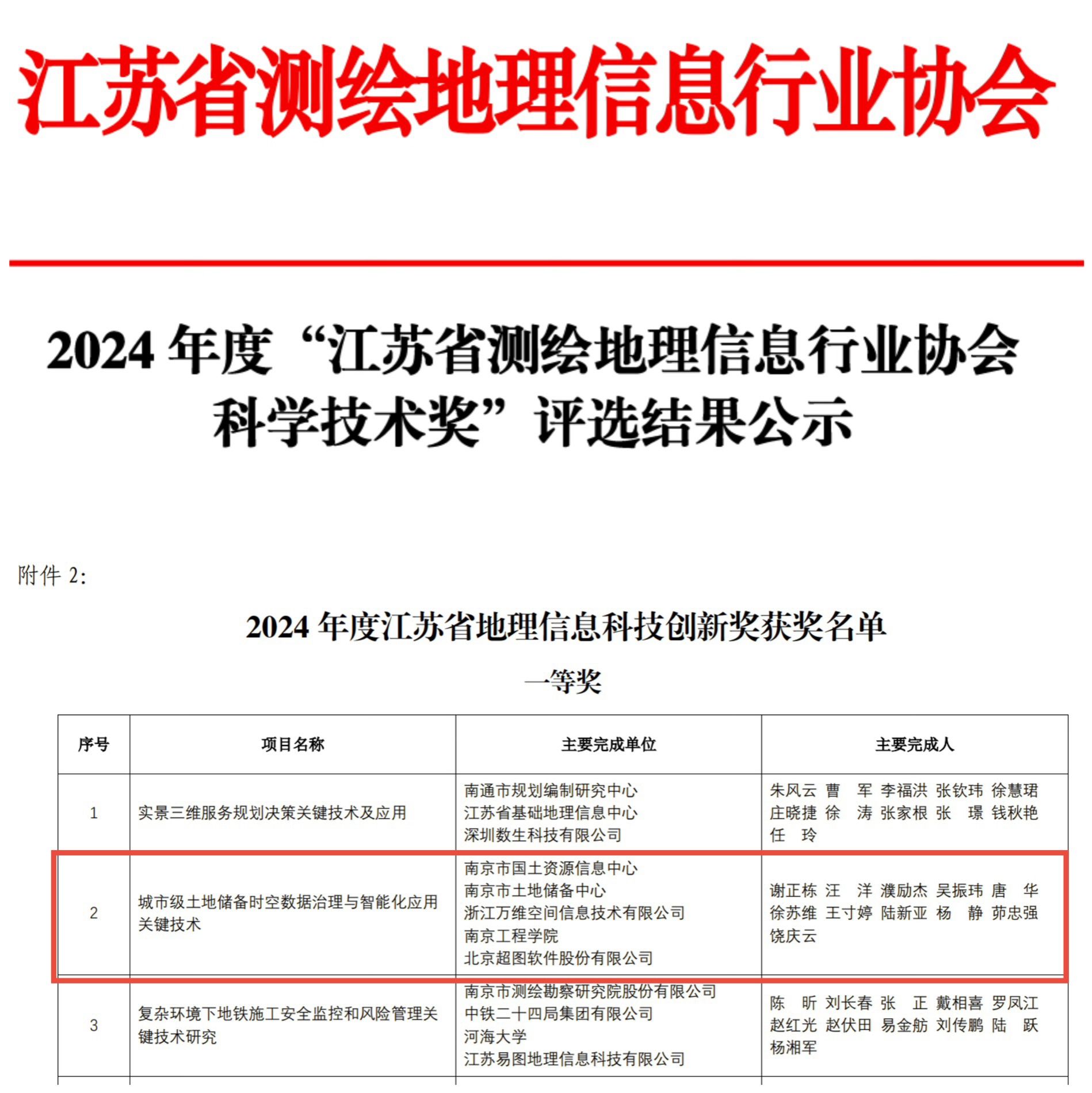 太阳集团携手合作单位荣获2024年度地理信息科技创新一等奖