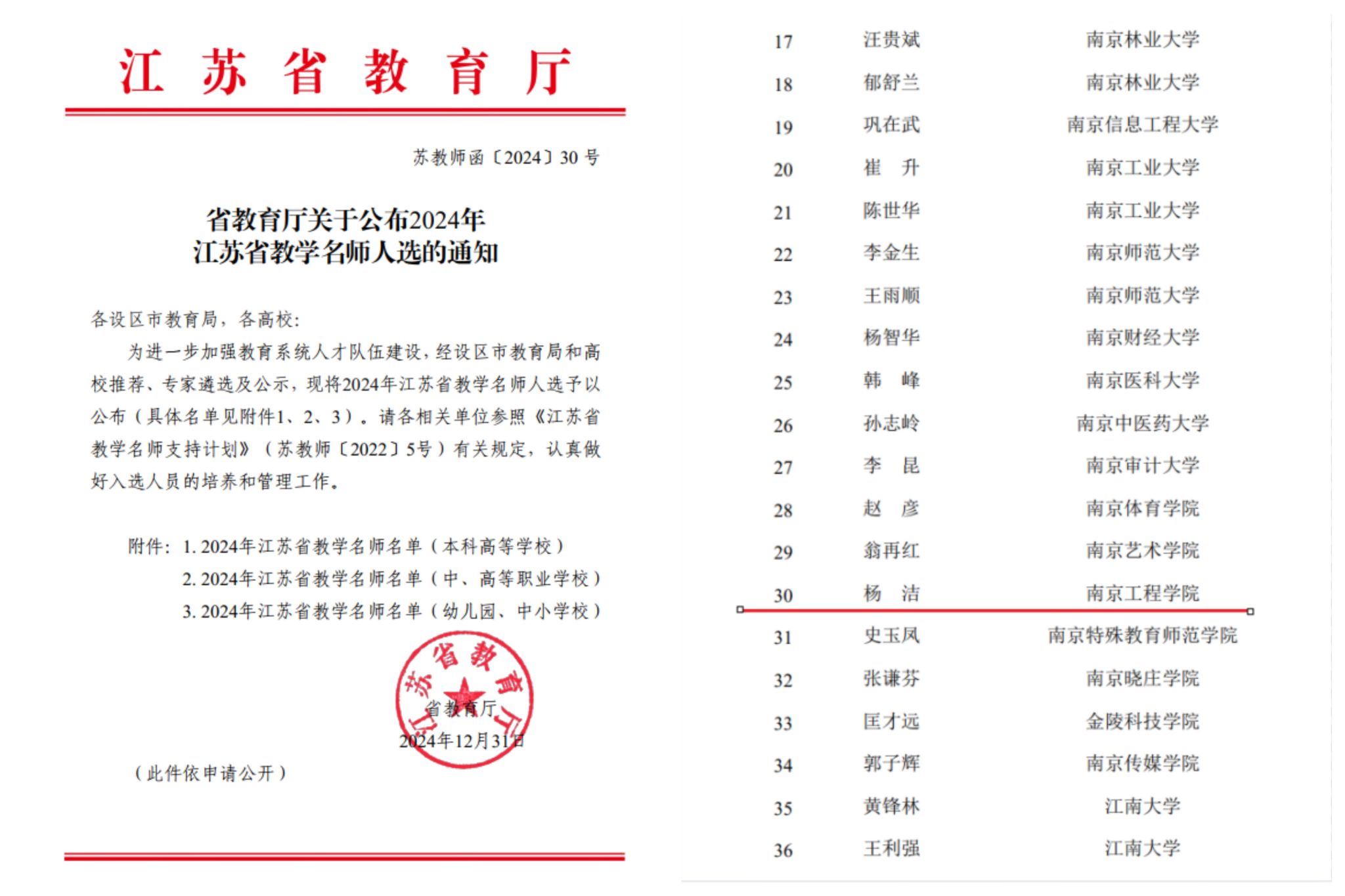 太阳集团教师入选“江苏省教学名师”