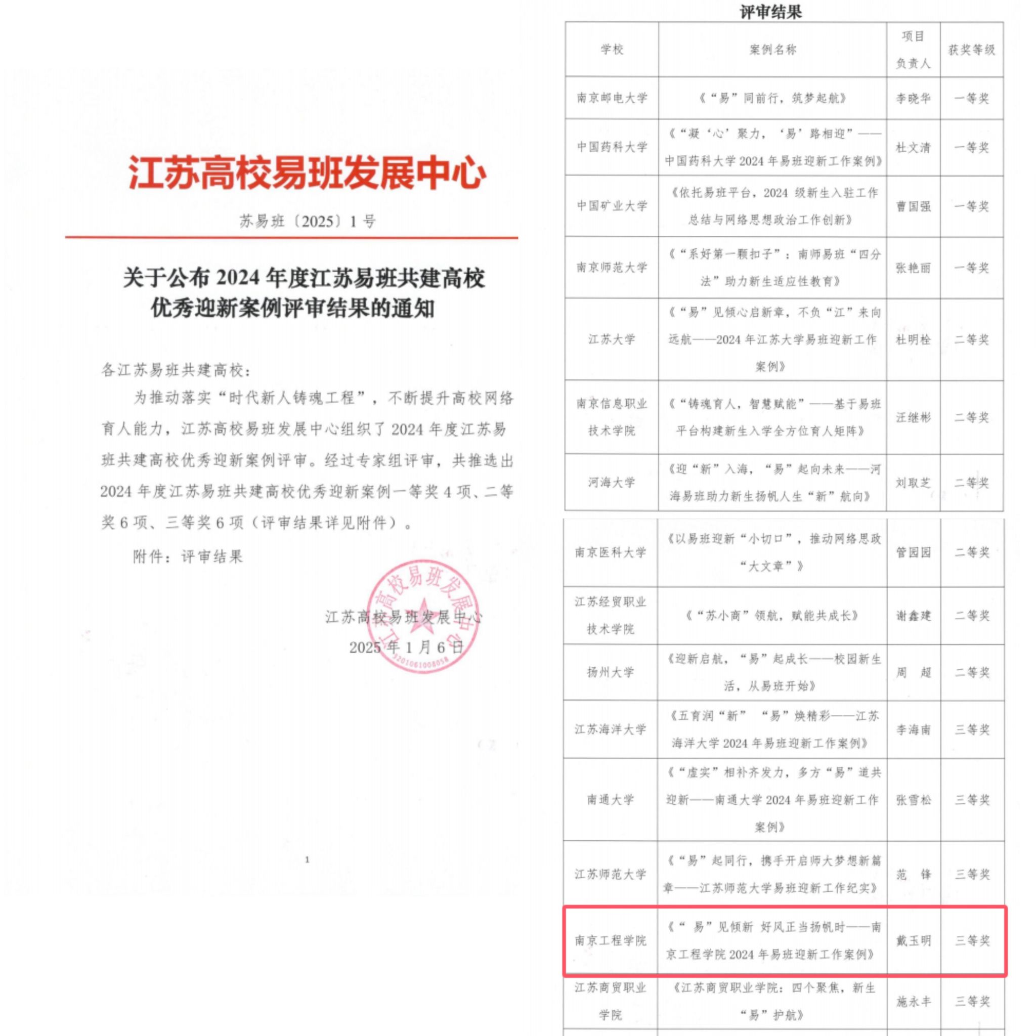 学校荣获2024年度江苏省易班共建高校优秀迎新案例三等奖