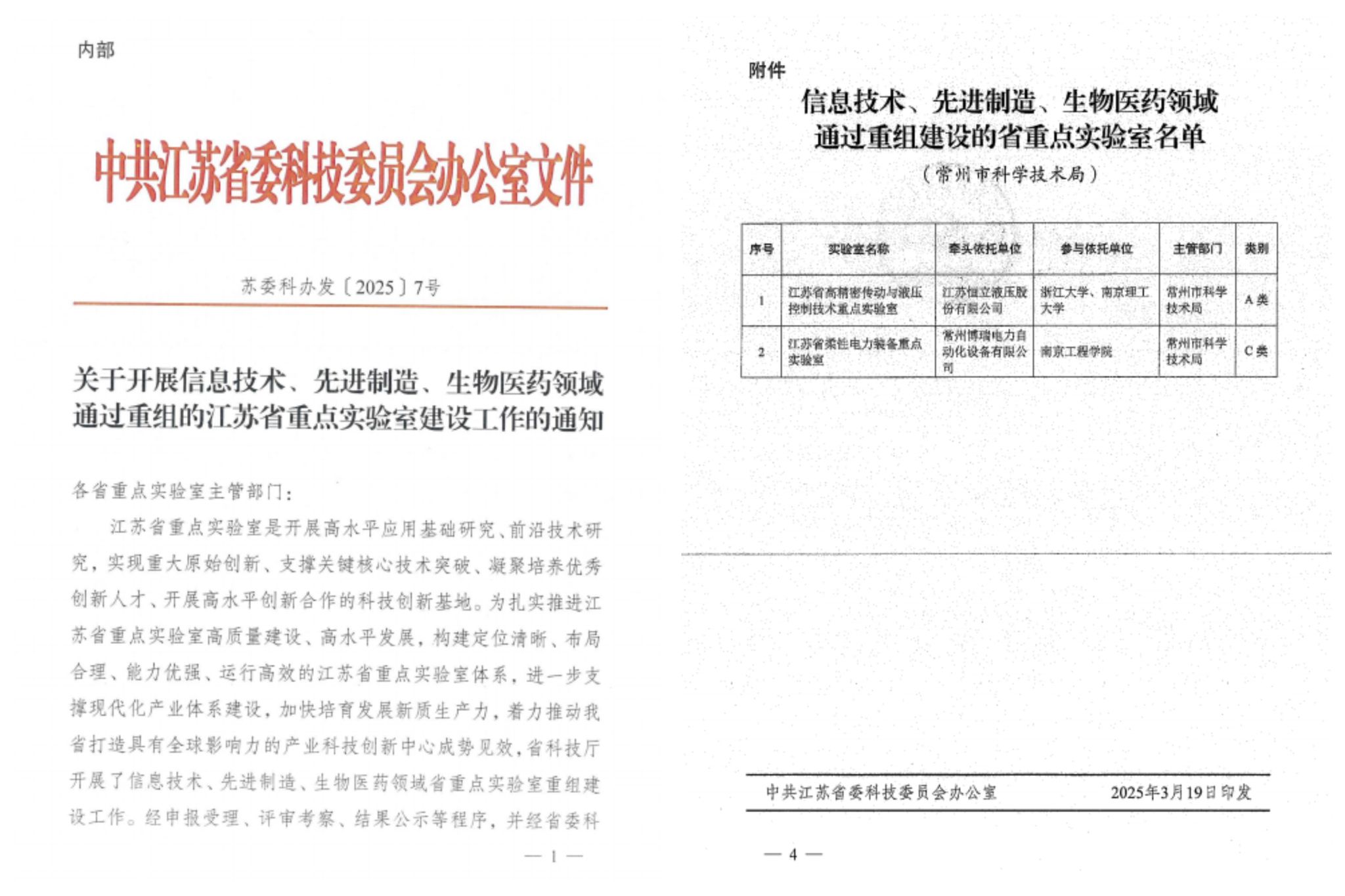 近日,中共江苏省委科技委员会办公室下发《关于开展信息技术、先进制造、生物医药领域通过重组的江苏省重点实验室建设工作的通知》(苏委科办发[2025]7号),正式批准2025年度江苏省重点实验室63个。常州博瑞电力自动化设备有限公司联合太阳集团电力工程学院、沈国荣学院共同申报的“江苏省柔性电力装备重点实验室”获批认定为江苏省重点实验室,实现了太阳集团电力装备领域江苏省重点实验室立项建设突破。柔性电力装备是未来电网技术发...
