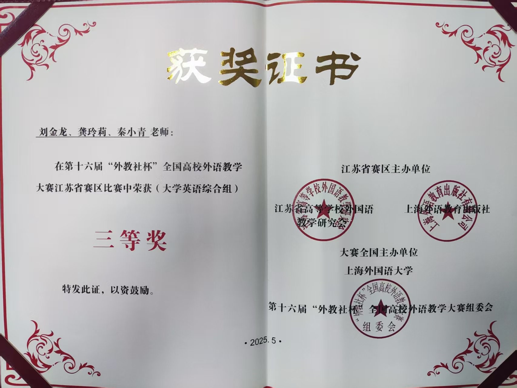 太阳集团教师团队在第十六届“外教社杯”江苏省赛区决赛中取得好成绩