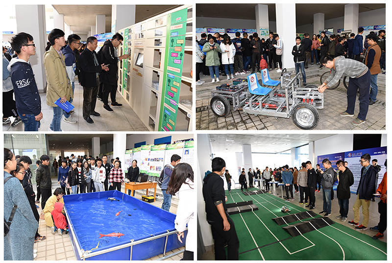 此外,机械工程学院的多功能硬币筛分机、材料工程学院的新型玉米收割机、电力工程学院的石油管道仿生鱼巡检系统、自动化学院的智能无人车、通信工程学院的失踪儿童追寻系统、能源与动力工程学院的核电厂系统模型、建筑工程学院的穹顶之下、工业中心的云3D打印机、艺术与设计学院的仿生新能源车等以其精妙的构思、实用便捷的设计吸引了众多的参观者。