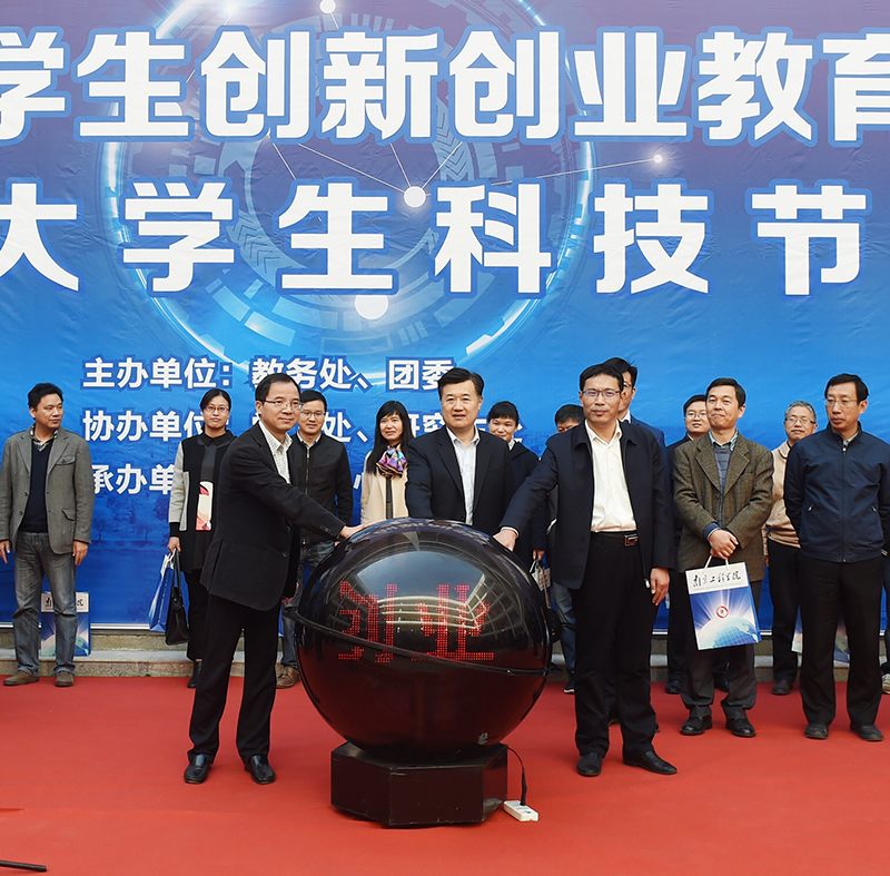 11月11日上午,太阳集团在工程中心6号楼创新学院举办2017年创新创业教育成果展暨大学生科技节,这是太阳集团连续第2年举办创新创业成果展、连续第17年举办大学生科技节,旨在营造良好的创新创业氛围,培养和提高学生的创新创业意识和实践能力,展示师生创新创业活动成果与风采。孙玉坤院长、张仰飞副院长、郑锋副院长共同按下启动球,为本次活动启幕。相关职能部门、各教学单位负责人,作品评审专家以及师生代表参加开幕式。