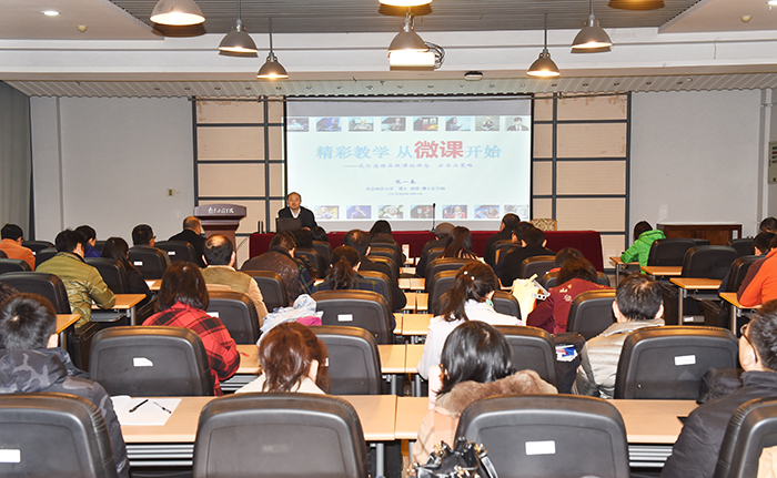 张一春教授以上一届全省高等学校微课教学比赛微课比赛获奖作品为切入点,介绍了省赛的基本情况,进而提出在信息化教育背景下“精彩教学要从微课开始”的观点。他从“为何需要微课?”“如何理解微课?”“如何设计微课?”“如何制作微课?”四个方面进行了系统深入的阐述。他指出,微课是以先进教育思想和教学理念为指导,以使学生自主学习达到最佳效果为目标,经过精心的信息化教学设计,以视频、动画等形式记录或展示教师围绕某个(某些)知识点(技能点)开展的简短、完整的教学活动。体现的是教师针对特定教学任务,充分、合理运用信息技术、数字资源和信息化教学环境进行教学设计和实际教学,并将教学的过程制作成为学习资源的能力。他认为微课具有“可自主学习、能移动学习、是简短有效”的三大核心“特征”和“教学设计、教学过程、包装展现”的三大核心“环节”,强调了微课的五个“四”——“四微”地位,“四术”原则,“四主”方法,“四合”内容和“四识”路径,引导大家充分理解了微课。同时,张一春教授又从微课的设计、筹制、拍摄、录屏、动效、编辑和应用七个关键点进行了细致的阐述,并结合丰富的理论和详实的案例,向教师们传授了如何制作微课的宝贵经验。他说,一堂精彩的微课,有七个要素必须具备,那就是:准确引人的标题、特色恰当的内容、创新为学的设计、充分管理的技术、精湛怡人的讲授、目标达成的效果和灵活多样的使用。