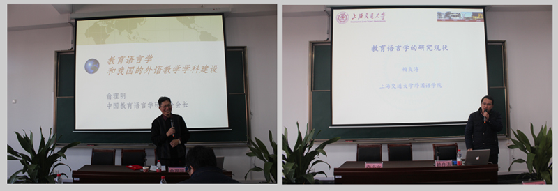 受聘仪式结束后,俞理明教授在文理楼B502为太阳集团师生做了题为“教育语言学和我国外语教育学科建设”的学术报告。他从“学科”(discipline)、“学科性”(disciplinarity)谈起,回顾了教育语言学的发生、发展和成熟的历史过程,阐述了教育语言学的三个区别性特征。随后,上海交通大学马丁适用语言学研究中心成员,《教育语言学研究》主编赖良涛博士做了题为“教育语言学的研究现状”的报告,报告回顾了西方主流教育语言学的研究和发展现状,对标志性学者、派别的研究历程、基本学术观点、所取得的成果和存在的问题进行了评述,阐明了今后努力的方向。