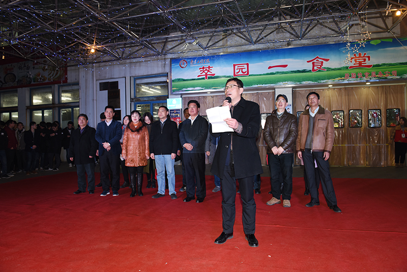 从下午17:00开始,萃园一食堂里就洋溢着喜悦的氛围,迎接新年的灯火早已点亮,各学院的同学都积极来装饰各自的展区。17:50,舞狮队的暖场表演引爆了游园会的气氛。张仰飞副院长现场致新年贺词,并向同学们致以最真诚的新年问候和祝福。