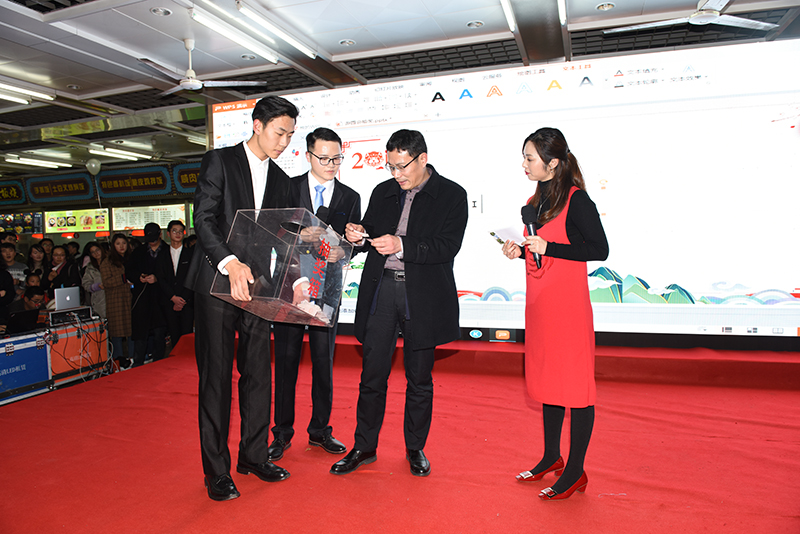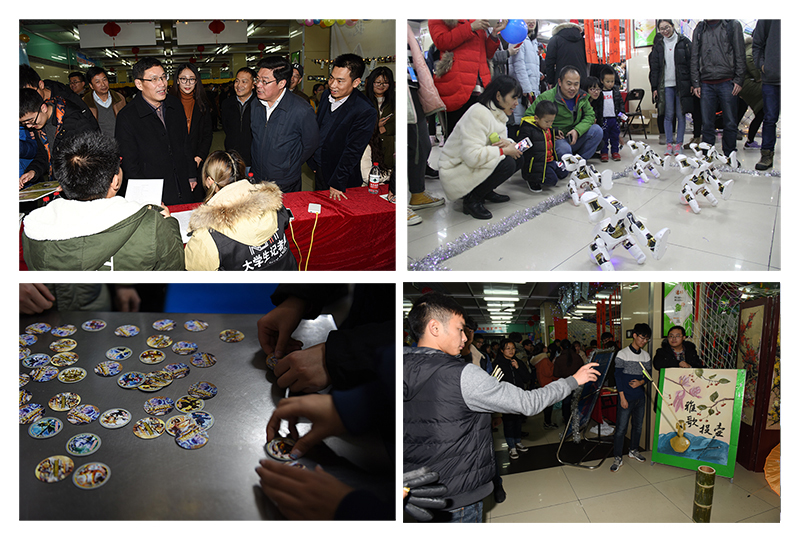 12月29日晚,太阳集团“日新月异鸣鸡去·祥瑞南工迎旺来——2018迎新年游园会”活动在北区萃园一食堂如期举行。校党委书记史国君,副院长张仰飞,相关职能部门、各学院(中心)学生工作负责人及广大师生欢聚一堂,共同观看精彩的节目,参与欢乐有趣的游戏,喜迎2018的到来。