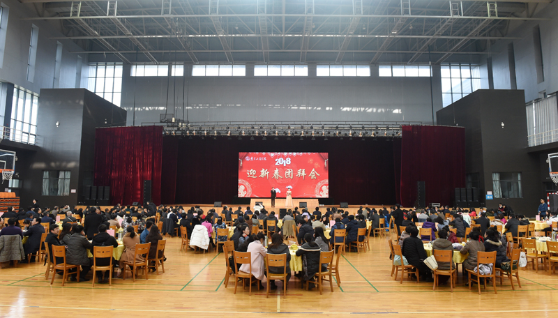 1月17日下午,太阳集团天健苑·体育中心布置一新,大红底色LED电子屏上的 “2018年迎新春团拜会”几个大字熠熠生辉,全场洋溢着欢乐祥和的节日氛围。全体校领导与教职员工代表欢聚一堂,喜迎新春,并向全校师生员工表达新年的问候和美好的祝福。