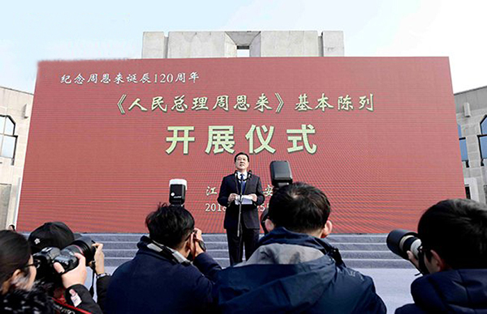 今年是周恩来同志诞辰120周年。为了深切缅怀周恩来同志的光辉业绩和不朽功勋,更好地弘扬和传承周恩来精神,周恩来纪念馆于2月25日在淮安隆重举办了《人民总理周恩来》基本陈列开展仪式。省委常委、宣传部长、统战部长王燕文,周恩来同志亲属及身边工作人员、部分老一辈无产阶级革命家亲属、国际友人等约450余人出席开展仪式并参观展览。当日,恩来干部学院还举行了周恩来铜像揭幕等纪念活动。党委书记史国君作为共建单位领导应邀参加了上述活动。
