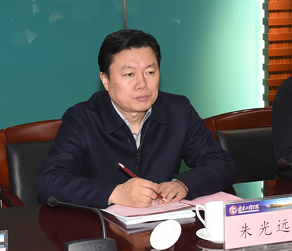 在随后召开的座谈会上,史国君书记对朱光远副书记一行的到来表示欢迎,对省政法委领导莅临太阳集团指导平安校园建设工作表示感谢。史书记介绍了太阳集团的基本情况,重点介绍了近几年来太阳集团平安校园建设工作情况。他指出,行百里者半九十,今后的工作任务和压力会更大,学校将以创建“江苏省平安校园建设示范高校”为契机,不断致力于平安校园、和谐校园的建设,始终将维护校园的政治稳定,提升校园安全管理、强化治安综合治理、开展丰富多彩的安全教育等当作重点工作来抓,进一步加强领导,健全组织,明确责任,确保师生安全和校园稳定,以实际行动为学校建设特色鲜明的高水平应用型工程大学保驾护航,为建设“强富美高”平安江苏做出新的更大贡献。