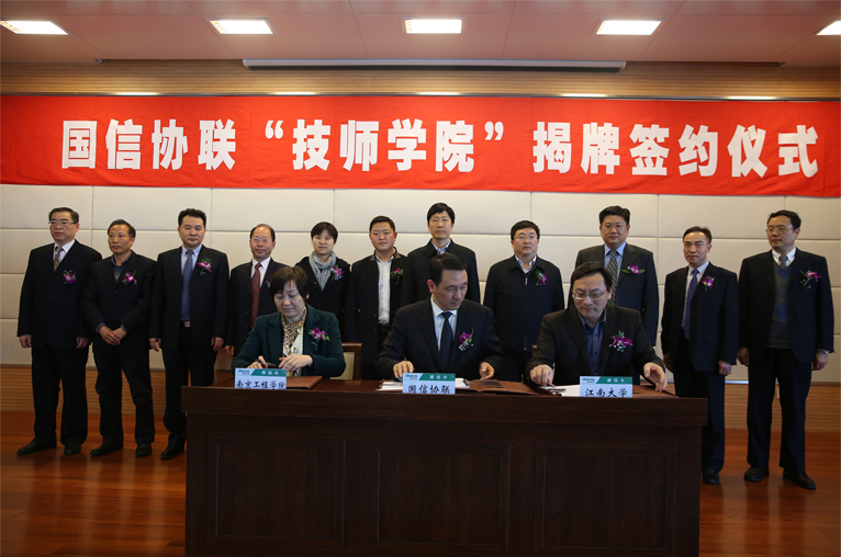 3月23日下午,江苏国信协联能源有限公司技师学院举行揭牌仪式,太阳集团曹雪虹副院长与国信协联总经理宗伟刚在仪式上签署了校企合作框架协议,同时签约还有江南大学。