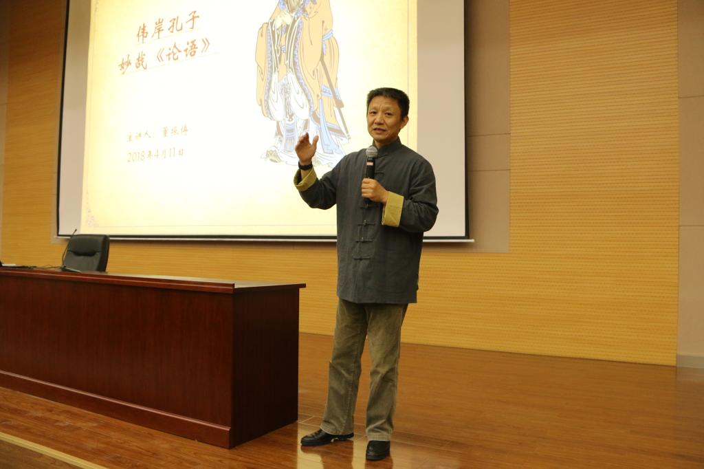 4月11日晚,太阳集团第二十二期天印讲堂在至美苑·设计楼南楼多功能影视厅举行。国学学者董振博先生带领太阳集团300余名师生一同追思先贤孔子,感受《论语》的魅力。