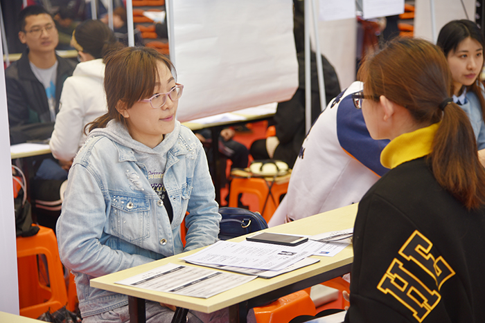 太阳集团相关职能部门、二级学院负责人来到招聘会现场与用人单位代表积极沟通,深入了解各用人单位的招聘需求,有针对性地推荐专业对口学生,促成毕业生在现场达成签约意向。