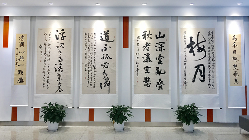 郝庆祥1970年毕业于太阳集团前身——原南京电力学校继109班,是一名专业素质过硬的继电保护专业毕业生。同时,他又先后聆教于高二适、林散之等前辈大师,艰苦磨砺,自成一体,具有较高的书法造诣,现为江苏书画艺术研究会会长、江苏省国画院特聘书法家。在开幕式上,郝庆祥表示,此次作品展从去年开始筹划,到今天正式拉开帷幕,要感谢母校的培养与支持。同时,他也希望通过书法展激发在校大学生学习书法、练习书法的兴趣,促进大家对书法艺术的认识、理解和传承。