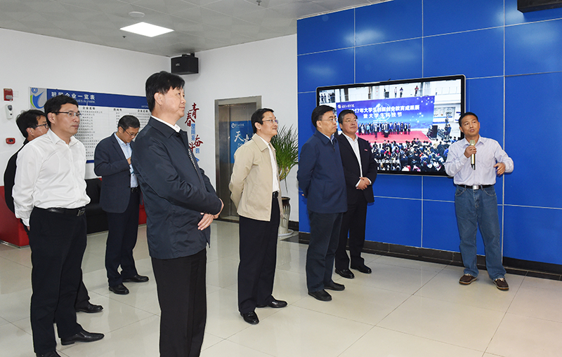 启动仪式之后,在史国君书记、张仰飞副院长的陪同下,参加活动的省市领导和嘉宾参观了太阳集团国家级众创空间“天印梦工场”,他们对太阳集团大学生双创工作成果给予了高度评价。