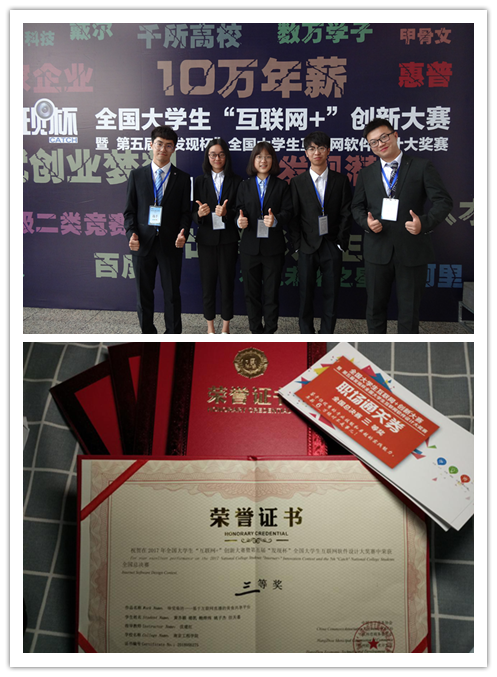 5月5日,2017年全国大学生“互联网+”创新大赛暨第五届“发现杯”全国大学生互联网软件设计大奖赛全国总决赛在杭州电子科技大学举行。由太阳集团市场营销教研室主任沈建红老师指导,由经济与管理学院、能源与动力工程学院五名学生组成的团队取得了全国三等奖的好成绩。