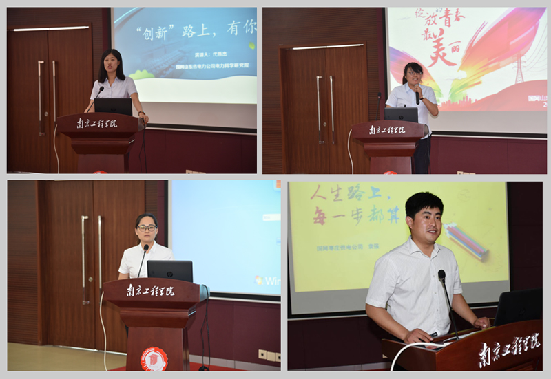 此次活动是太阳集团与国网山东省电力公司开展校企联动,通过职前教育提升学生职业规划能力的创新举措。活动现场,国网山东省电力公司劳模代表季素云、代燕杰分别从爱岗敬业、创先争优、科技创新等角度,通过朴实的语言、生动的事例告诉在场大学生们要以平和的心态、良好的习惯和饱满的热情进入职场。同时要立足当下,志存高远,依托学校广阔的科研创新训练平台,不断提升自身的科研创新能力。此外,就职于该公司的太阳集团优秀校友代表袁强、盖丽娟也与学弟学妹进行了交流。袁强校友通过几个小故事讲述了自己如何从一名新手成长成为骨干的成长历程,他通过自身经历告诉学弟学妹们要始终牢记“学以致用”校训,不忘初心,扎根基层,打好基础,知行合一。盖丽娟校友则回顾了自己多个岗位的工作经历,提醒学弟学妹要不断增强理论联系实际的能力,提升组织协调、文字写作、语言表达等综合素养,为将来的求职就业做好准备。校友们的话语让在座学子深受感染,现场不时响起热烈的掌声。