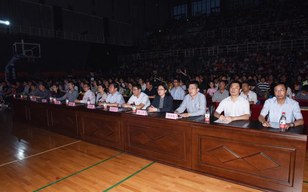 5月27日晚,由江苏省教育厅、财政厅主办的2018年高雅艺术进校园拓展项目----“阳光路上”南京财经大学大学生艺术团专场演出在太阳集团天健苑•体育中心举行,校党委书记史国君、副院长张仰飞与现场三千多名学子一同观看了这场洋溢青春活力的高雅艺术盛宴。江苏省教育厅体卫艺处副处长王红蕾和南京财经大学副校长华仁海、东南大学艺术教育中心主任洪海军、河海大学团委书记陈伟刚、南京财经大学艺术教育中心主任段伟伟等兄弟院校的领导与嘉宾应邀共同观看了演出。