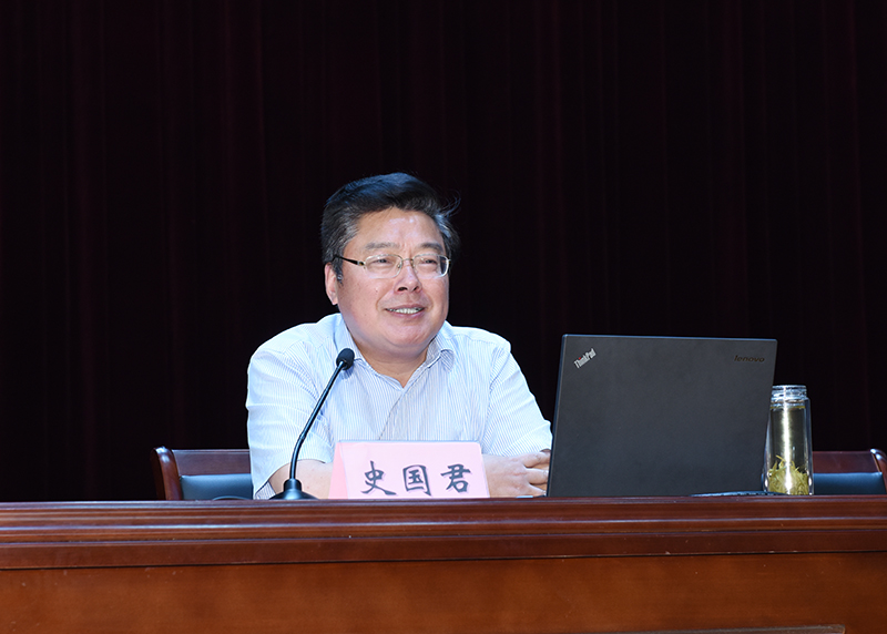 6月6日下午,校党委书记史国君为太阳集团学生骨干做题为“新时代大学生的历史使命与责任担当” 的专题报告,报告会由副院长张仰飞主持。一二年级班级班长、团支书、非毕业班学生党员、校“青马工程”第七期学生骨干培训班全体学员等近千名学生骨干聆听了报告。