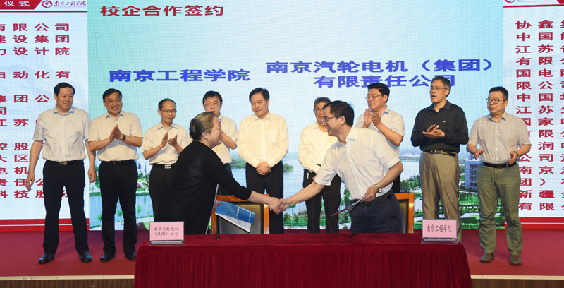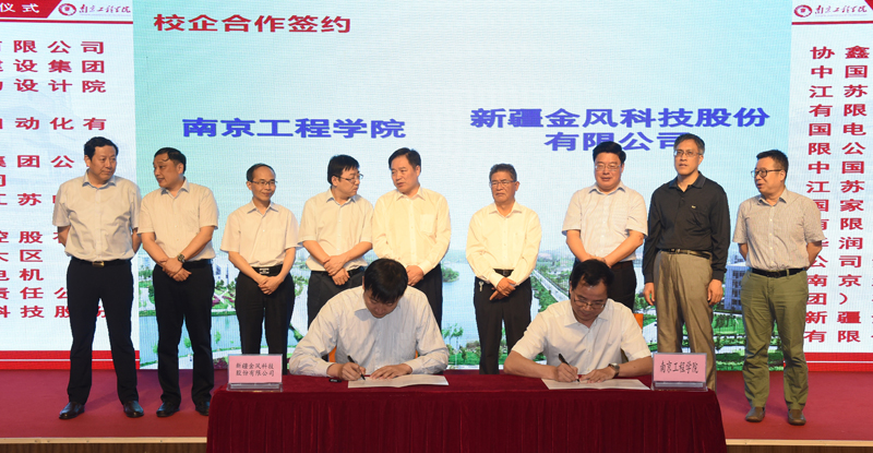 在与会领导与嘉宾的共同见证下,郑锋代表能源研究院与协鑫集团有限公司、中国能源建设集团江苏省电力设计院有限公司;国电南京自动化有限公司;中国华能集团公司江苏分公司;国家电投江苏电力有限公司;华润电力控股有限公司江苏大区;南京汽轮电机(集团)有限责任公司;新疆金风科技股份有限公司等8家公司签署了校企合作协议。
