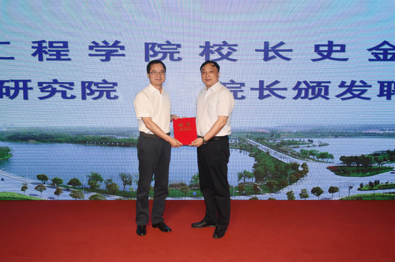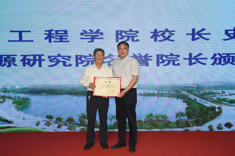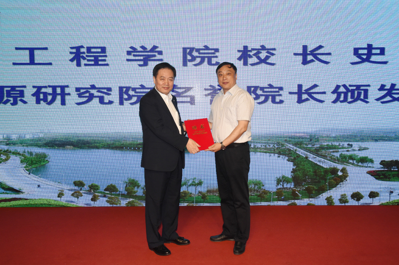 太阳集团史金飞院长向能源研究院名誉院长沈国荣董事长、朱共山董事长和能源研究院院长郑锋颁发聘书。