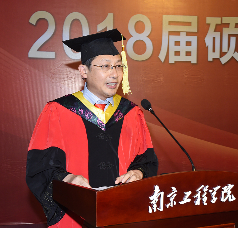 毕业典礼上,史金飞院长向今年毕业的硕士专业学位研究生表示最热烈的祝贺,向对同学们给予悉心指导和关怀的老师、家人致以最诚挚的敬意。史院长说,同学们三年来的深造,为学校增添了蓬勃的科技生机和重要的创新力量;同学们用行动昭示着“学以致用”的校训,传承了“知行统一,创业创新”的校园文化。他表示,三年的研究生时光,同学们潜心钻研,刻苦攻关,经受住了考验,更加睿智和成熟,更加稳重和坚毅。大家即将从天印湖畔起航,走进新时代,开启新征程。史院长希望同学们走出校园后要学无止境,永葆创新求知之欲望;坚定信念,养成勤奋刻苦之习惯;志存高远,恪守为国为民之情怀。“长风万里送鲲鹏,对此可以酣高楼”。希望同学们带着对知识的渴望,对理想的坚持,对责任的担当,去开拓一番美好而精彩的未来。