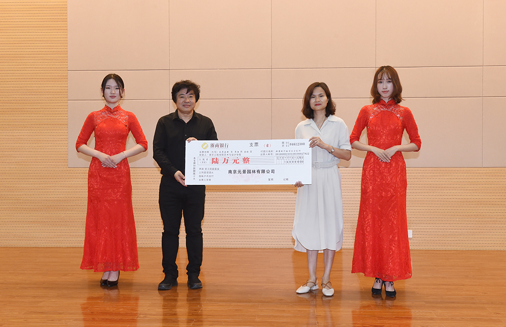 企业代表、南京元景园林有限公司董事长经云会女士热心校企合作,热爱教育事业,开幕式上,她代表南京元景园林向艺术与设计学院捐赠六万元奖学金。