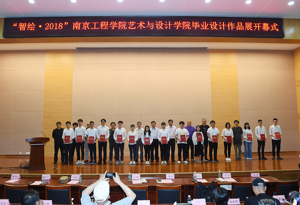 本次毕业作品中涌现出的20件优秀作品的设计者在开幕上受到表彰。获奖者之一、产品141班端木家航同学代表毕业生发言,他动情地说,四年的大学生涯,浓缩在一节节求知的课堂中和一张张设计图稿中,同学间的友谊、老师的谆谆教诲值得终生铭记,母校将是毕业生们永远的心灵港湾。教师代表刘凯老师表回顾了动画工作室探索“阶梯式人才培养模式”的努力及取得的成果,深感教师肩负的时代重任,并祝愿同学们用更多原创性的作品去引领设计潮流。