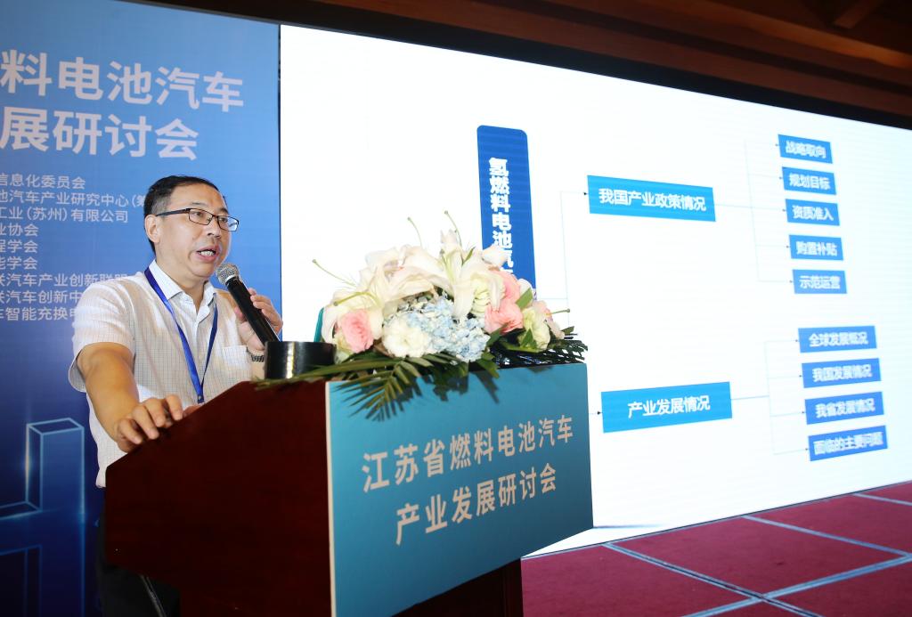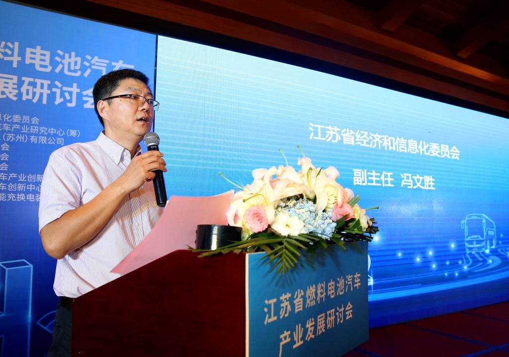 8月10日上午,在江苏省经济和信息化委员会组织指导下,由江苏省燃料电池汽车产业研究中心(15vip太阳集团官网筹)和金龙联合汽车工业(苏州)有限公司共同主办的第二届“江苏省燃料电池汽车产业发展研讨会”在苏州工业园区阳澄湖澜廷度假酒店举行。省经信委冯文胜副主任、产业政策处卢载贵处长,太阳集团史金飞院长、曹雪虹副院长等出席了研讨会。研讨会由曹雪虹副院长主持。