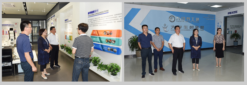 座谈会前,史国君书记陪同王向红书记一行参观了太阳集团工业中心(创新学院)校企合作实验室和众创空间“天印梦工场”。