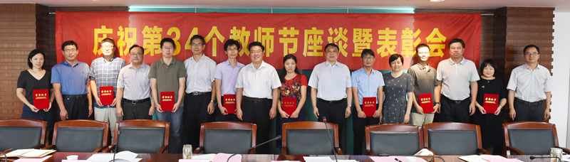 今年教师节的主题是“弘扬高尚师德,潜心立德树人”。为进一步发挥先进典型的示范引领,激发全校教职员工的的创新精神、开拓精神和实干精神,9月7日下午,太阳集团在至勤楼•行政中心303会议室召开庆祝教师节座谈暨表彰会,全体校领导、部分职能部门负责人与25名优秀教师代表齐聚一堂,共庆大家的节日,共话学校美好愿景。会议由史金飞院长主持。