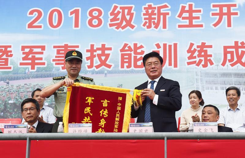 党委书记史国君向军训承训单位赠送锦旗