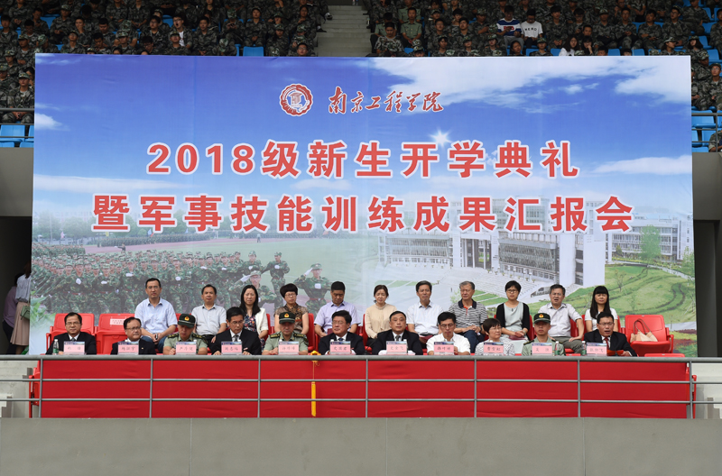 分列式结束后,2018级新生们带来了精彩的天印大鼓、战旗拼字、军体拳、擒敌拳、应急棍、匕首操等军训汇报科目表演,党旗、军旗、NJIT、“听党指挥、能打胜仗、作风优良”“中国梦、大学梦、我的梦”,当600多名新生以不断变换的队形摆出的巨型图案和文字出现在运动场上,全场掌声雷动,时刻变换的图形和队形、激情彭拜的呐喊声充分展示了“最热血高校”的大学生们爱党爱国爱校的情怀和自强不息、奋勇前行的时代宣言。整场表演精彩激烈,青春飞扬,动作整齐划一、呐喊势破重霄,鼓声震撼人心,一招一式铿锵有力,令人热血沸腾,现场掌声雷动。