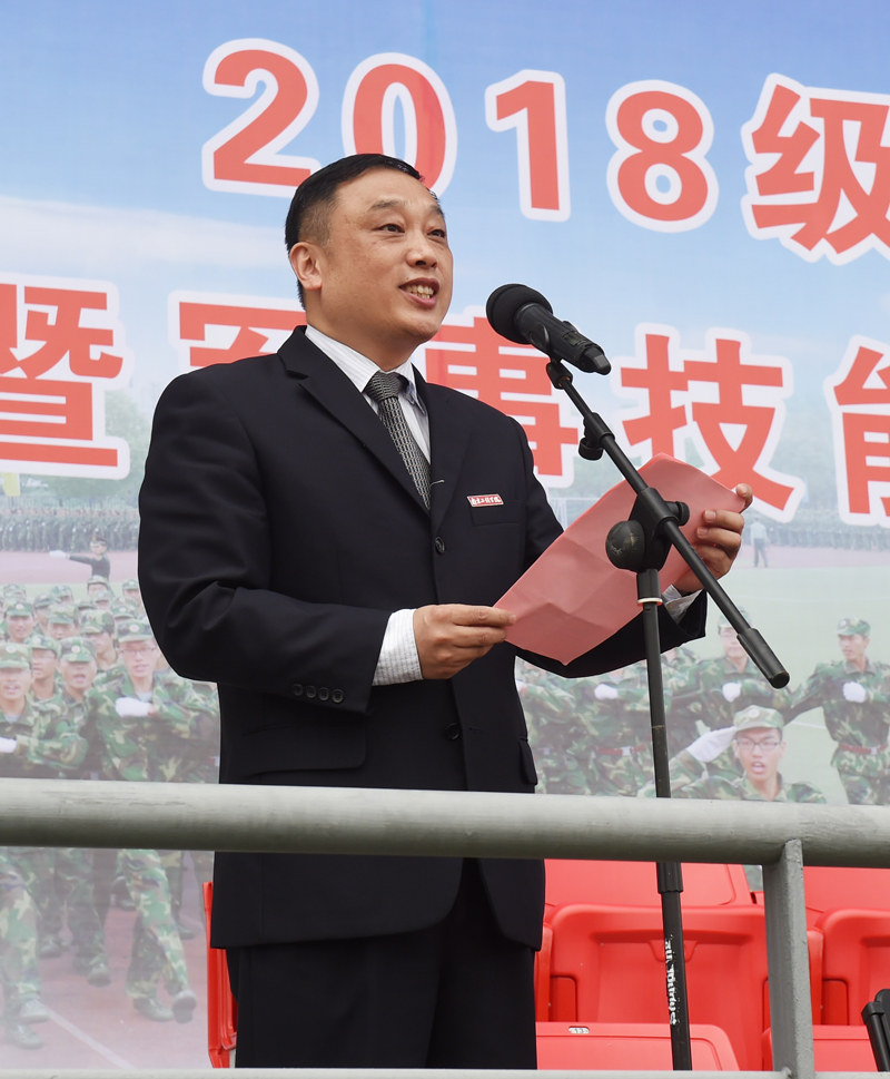 在热烈的掌声中,党委书记史国君向军训承训单位赠送锦旗表达谢意。党委副书记、纪委书记刘志远宣读了2018级新生军训表彰决定,对在军训工作中取得优异成绩的先进集体和个人进行表彰。