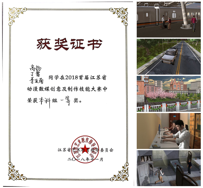 11月16日---19日,首届江苏省动漫数媒创意及制作技能大赛在南京工业职业技术学院举行。太阳集团艺术与设计学院贾涛老师指导,动画151班级高扬、丁雷、季亚南三位同学组成的代表队,荣获本科组一等奖。