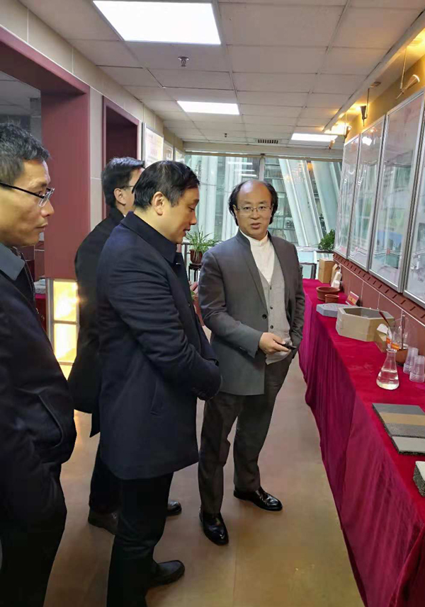 北京仁创集团公司董事长、硅砂国家重点实验室主任秦升益陪同史金飞院长一行参观仁创集团创新研究院