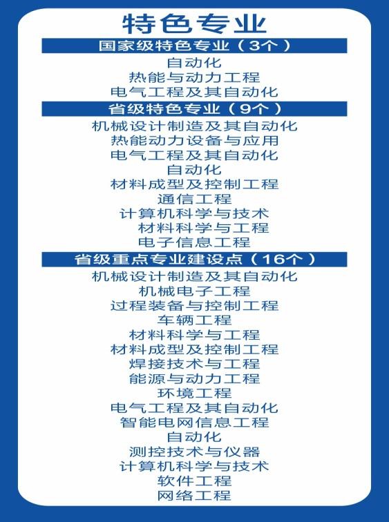 2014年以来,学校增设12个新专业,停招了包装工程、流体传动与控制等13个专业(方向);建设1个江苏省A类品牌专业;1个专业通过了工程教育专业认证,进入“工程教育第一方阵”;2个专业完成了工程教育专业认证现场考查。现有国家级特色专业3个,国家级卓越工程师培养计划专业6个,国家级专业综合改革试点专业2个,CDIO工程教育模式改革试点专业类2个;另有省品牌特色专业、省卓越工程师培养计划专业9个,省重点专业类6个(16个专业)。