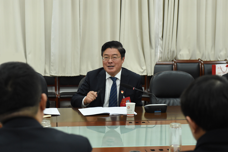 校领导们走进各个代表团参加审议,他们认真听取党代表发言,并结合学校事业发展建设的各项工作与大家交流讨论。