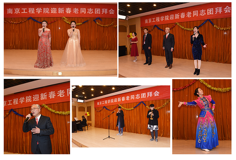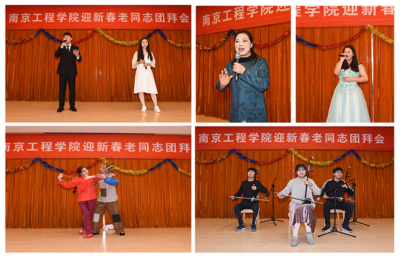 团拜会为老同志们精心准备了文艺节目。全体校领导带来了高亢激昂的小合唱《中国,中国,鲜红的太阳永不落》,表达了在党的领导下,不忘初心、砥砺奋进的精神和坚定迈向美好未来的信心。教职工表演的越剧《金玉良缘》、歌曲《最美不过夕阳红》、朗诵《南工乐章》,学生的西乐合奏、二胡合奏、舞剧《白毛女》、歌曲《节日欢歌》等节目相继登场,为老同志们送上了祥和温暖的新春祝福。老同志们被现场欢乐喜庆的气氛感染,纷纷拿出手机拍照留念。他们互致问候、互相交流,为学校事业发展取得的成果感到欣慰、对学校的未来充满信心。