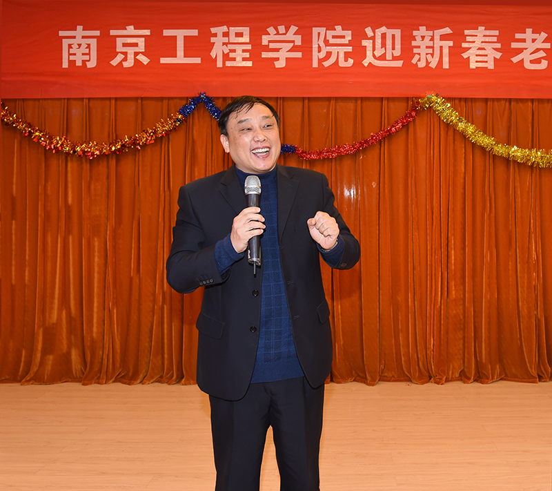 史国君书记在团拜会上发表了热情洋溢的新春致辞。他向参会老同志并通过他们向全校980名离退休老同志致以诚挚的节日问候和良好的新春祝福。他说,刚刚过去2018年忙碌而充实,学校事业发展可圈可点:第三次党代会胜利召开,为学校构画了两坚持、一加快的发展蓝图;教育教学改革、学科科研工作、对外合作交流取得了丰硕成果;学校在江苏整体调整至一本招生,人才培养质量全面提升;学校喜获“江苏省平安校园示范校”、南京市十大“最美校园”之首的荣誉……。史书记指出,所有成绩的取得都离不开老同志们对学校的关心、关爱和支持,我们会把老同志对学校事业的关心关注和热切期盼传递给每一位师生员工,激励大家在工作中更加努力、更加奋发有为,力争取得更为丰硕的成果。