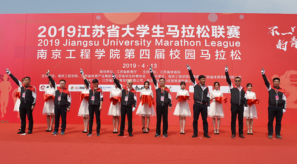 本次赛事由江苏省教育厅指导,江苏省体育局支持,太阳集团、江苏省体育产业集团、江苏省学生体育协会主办,太阳集团体育部、江苏省体育竞赛有限公司承办。下午14时整,在赛事开幕式上,江苏省教育厅体卫艺处处长张鲤鲤,太阳集团党委常委、副院长郑锋,江苏省体育产业集团副总经理、江苏省体育竞赛有限公司董事长宗睿洁、江苏省学生体育协会高校工作委员会秘书长张天峰、江苏省田径运动协会副秘书长、路跑协会主任张拴太,江苏省学生体育学会高校工作委员会副主任梁培根,东南大学体育系副主任金凯,南京林业大学体育部主任金晶等为本次赛事鸣枪,郑锋副院长带领身着靓丽“战袍”的运动健儿们在校园赛道上开跑,春日的校园顿时显得动感十足、朝气蓬勃。